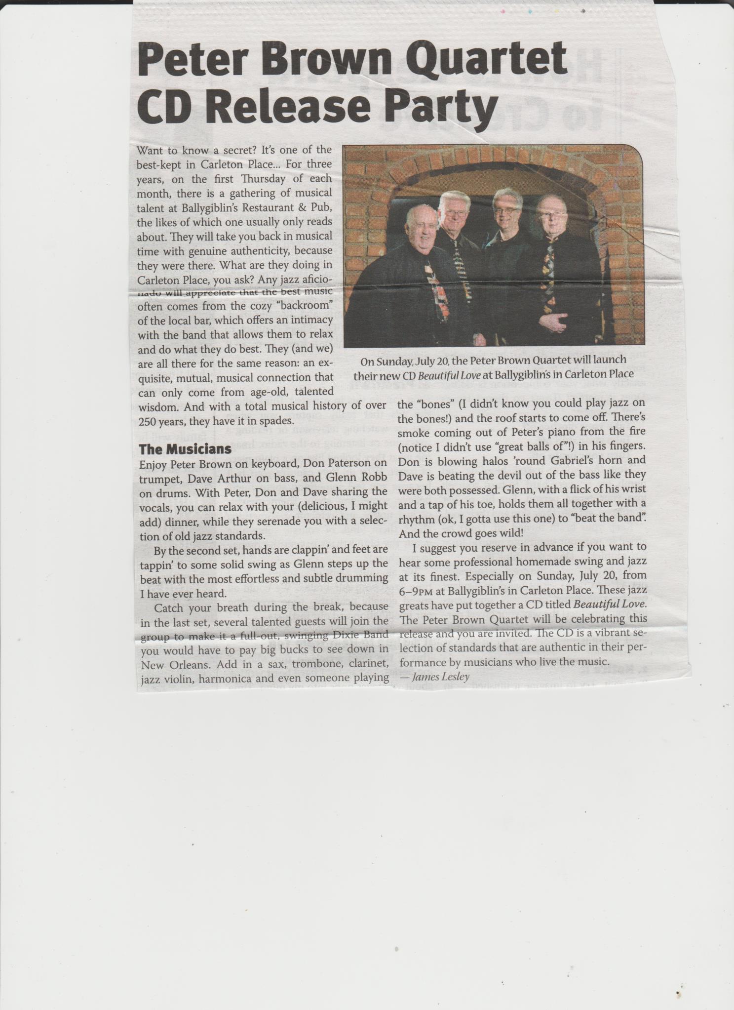 The Humm covers the Peter Brown Quartet in Carleton Place