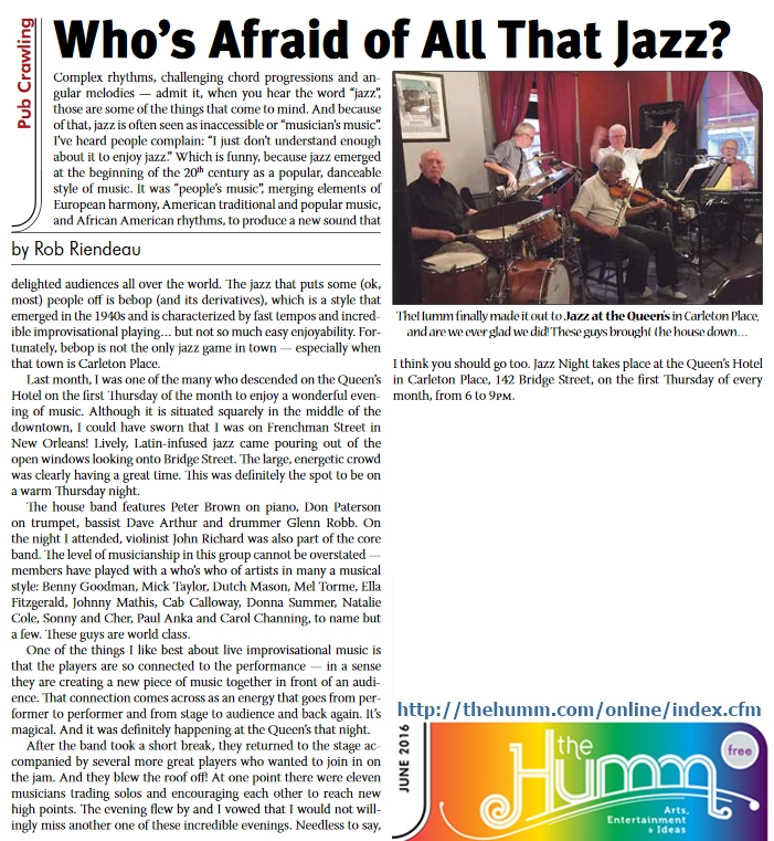 Review of The Queen's Jazz Night, The Humm, June 2016