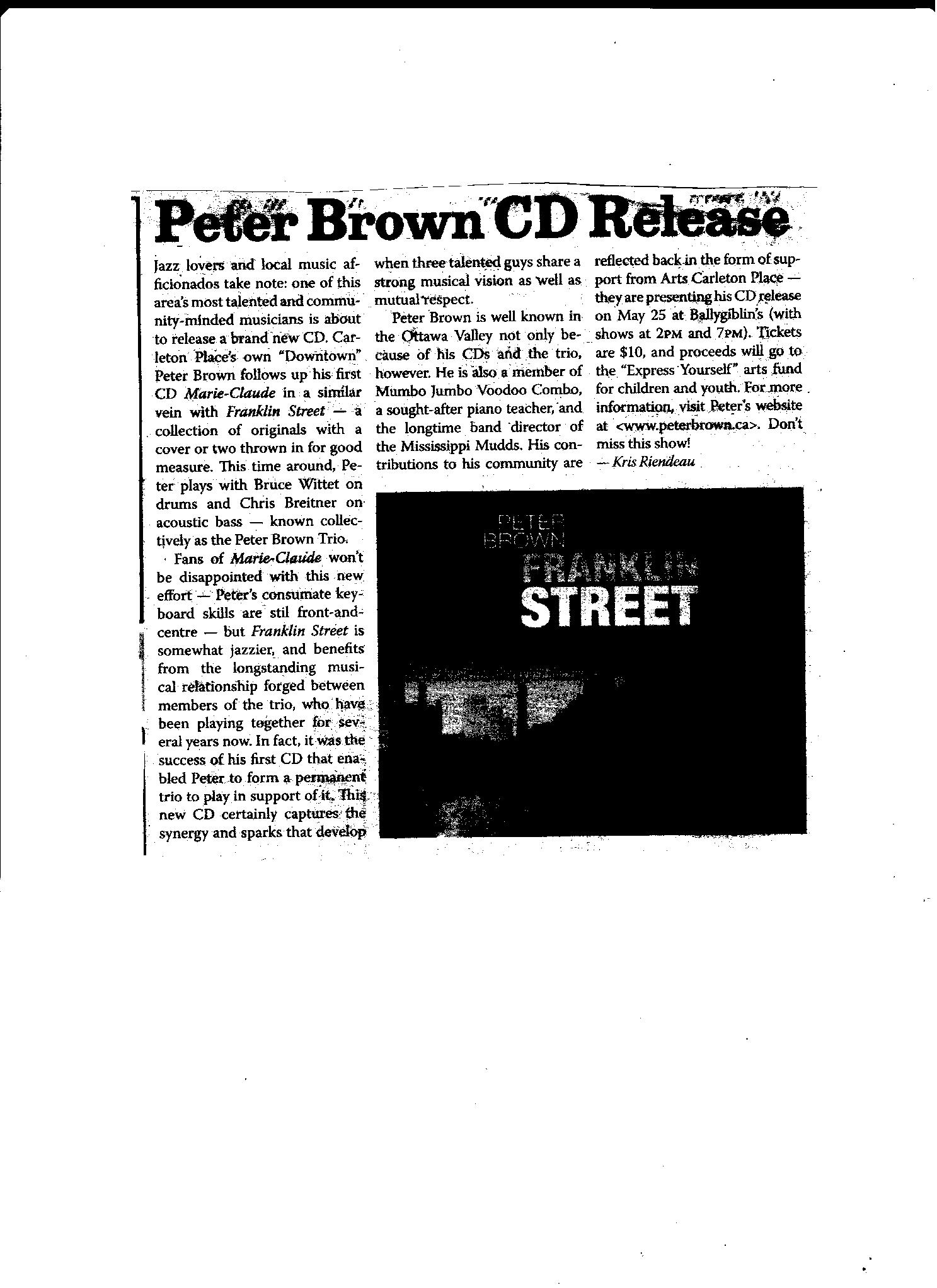 Lyle Dillabough profile of Peter Brown in The Canadian Gazette
