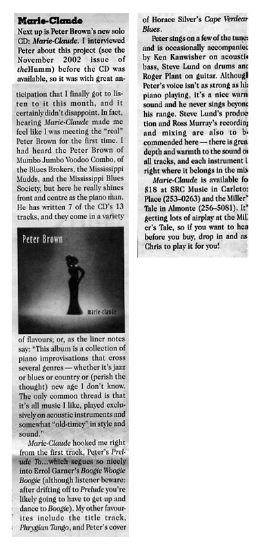 Humm coverage of first CD release, 2002